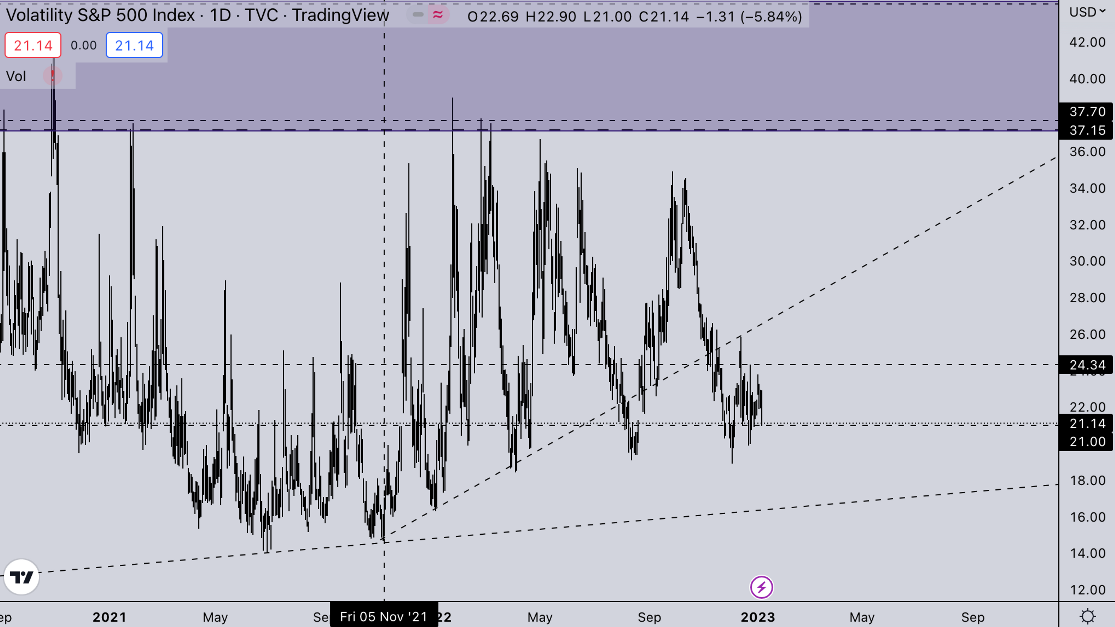 VIX closed on the edge above 21. With correlations between markets already dropping, crypto has less and less influence from the stock market, as long as we stay in this lower VIX regime.