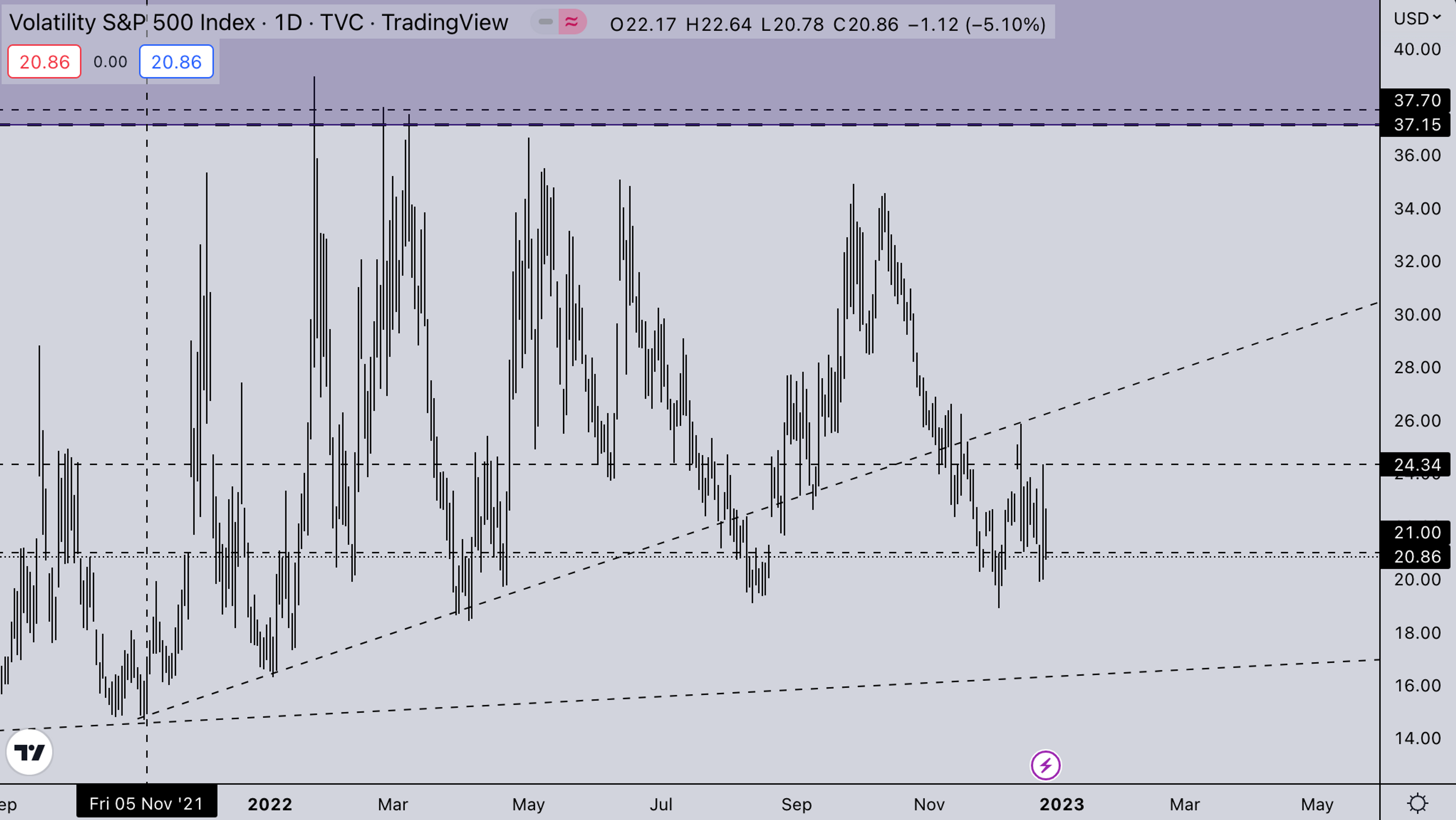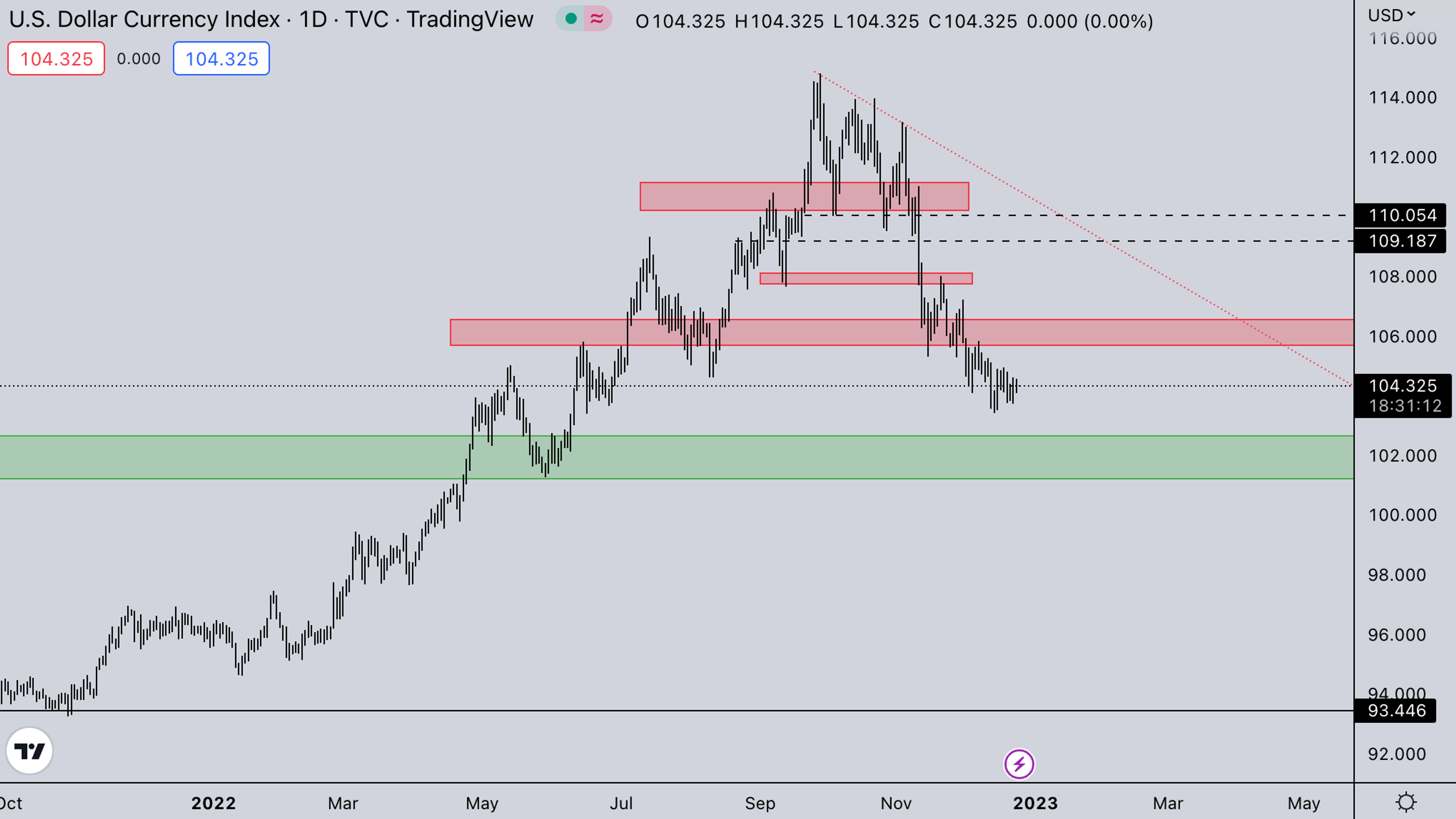 DXY is still consolidating on the lower end after the sharp selloff we’ve seen in the last quarter of the year. Any sharp move from here will move equities & crypto in the opposite direction. The DXY is still, however, not back to its previous strength after the epic run it saw earlier this year.