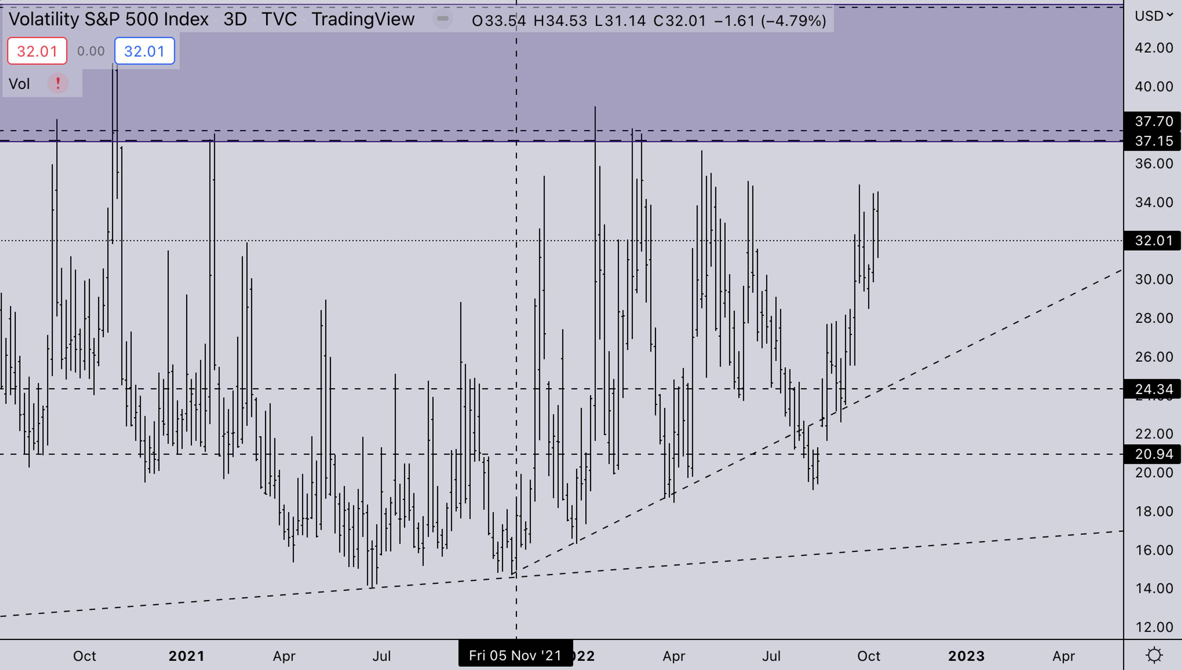 - VIX sustained in the lower 30’s. With the geopolitical situation intensifying, Russia, Ukraine, China, and the US over the chip industry, there are quite a few unknowns at this point that could lead to higher VIX.