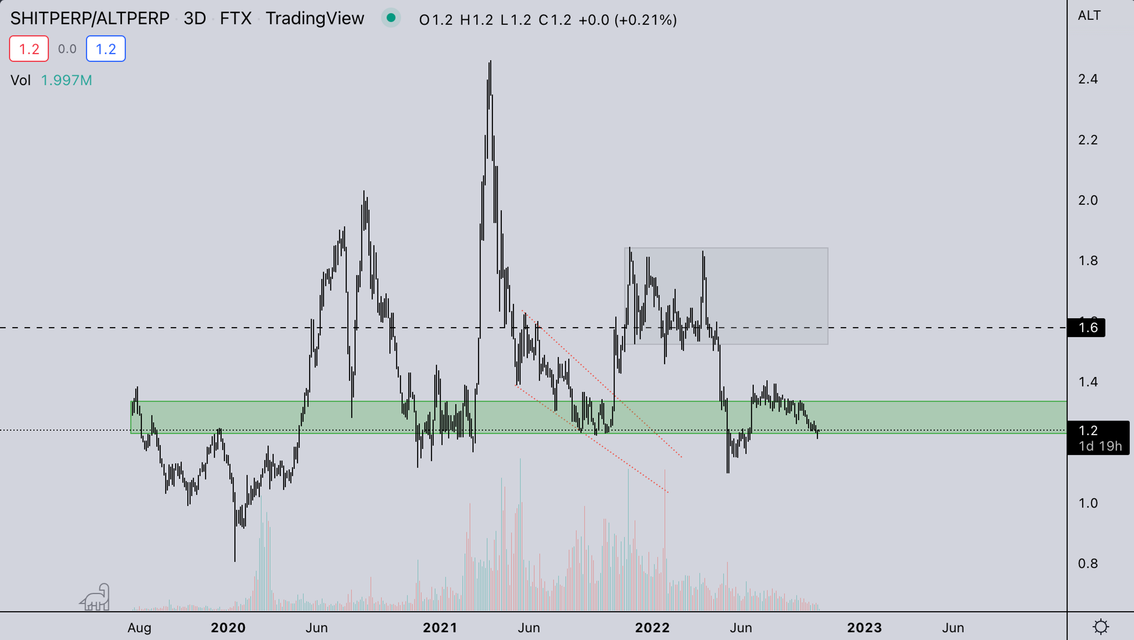 - With volatility being where it is in crypto at the moment and the duration of the consolidation (4 months!), the break of it can lead to multi-month trend.