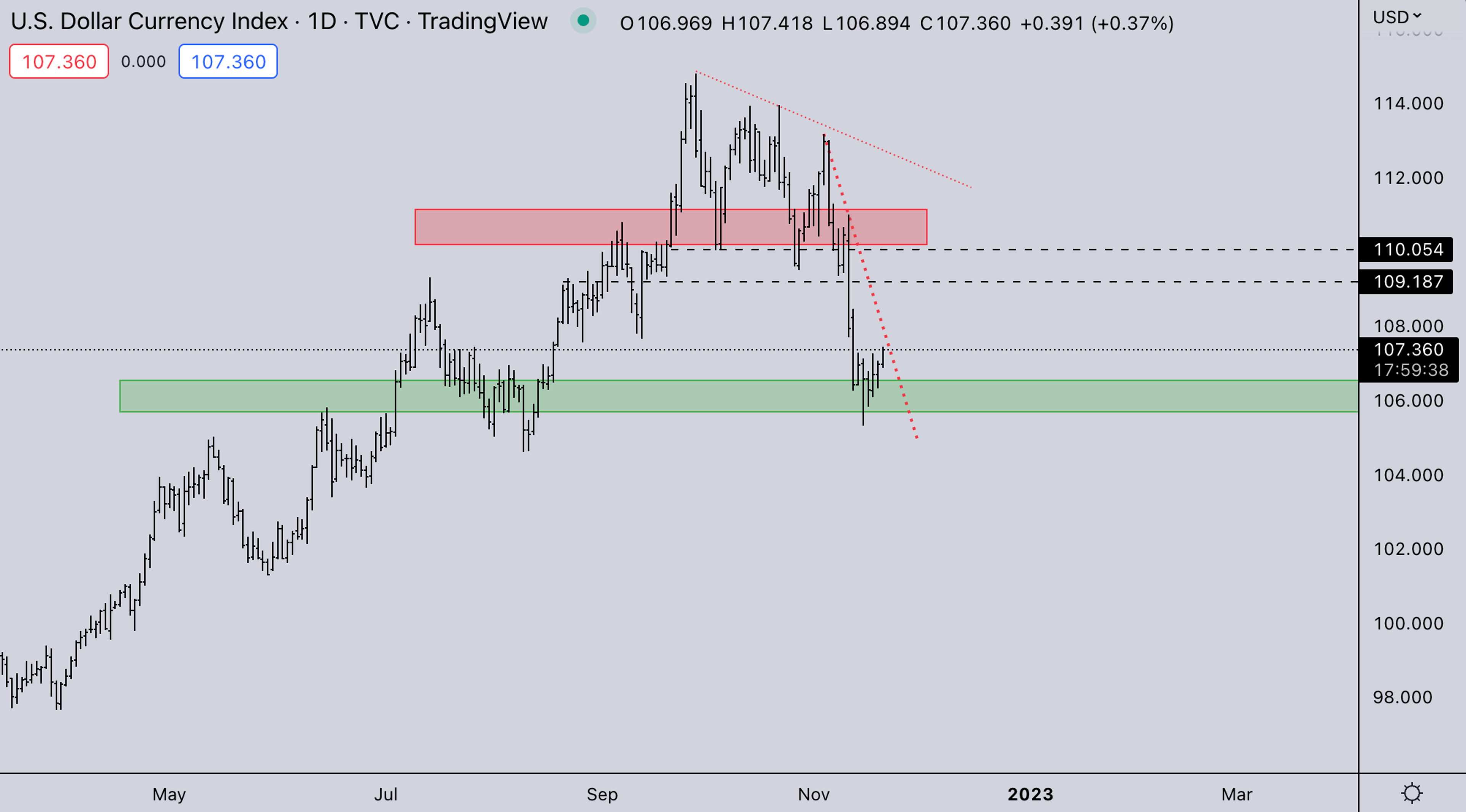 - As VIX and DXY are the main drivers for the down waves in equities and crypto, we also include a chart about the DXY from now on.