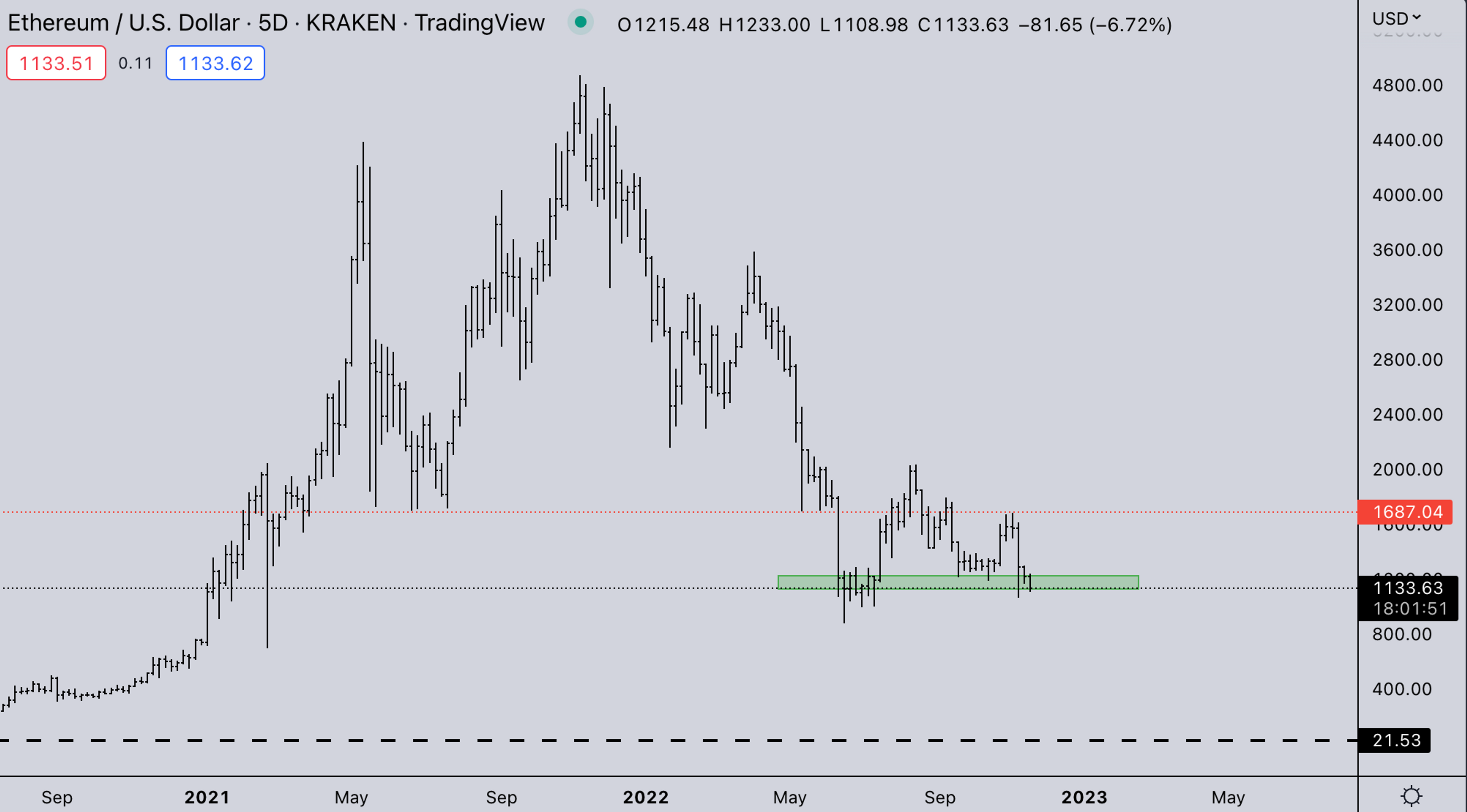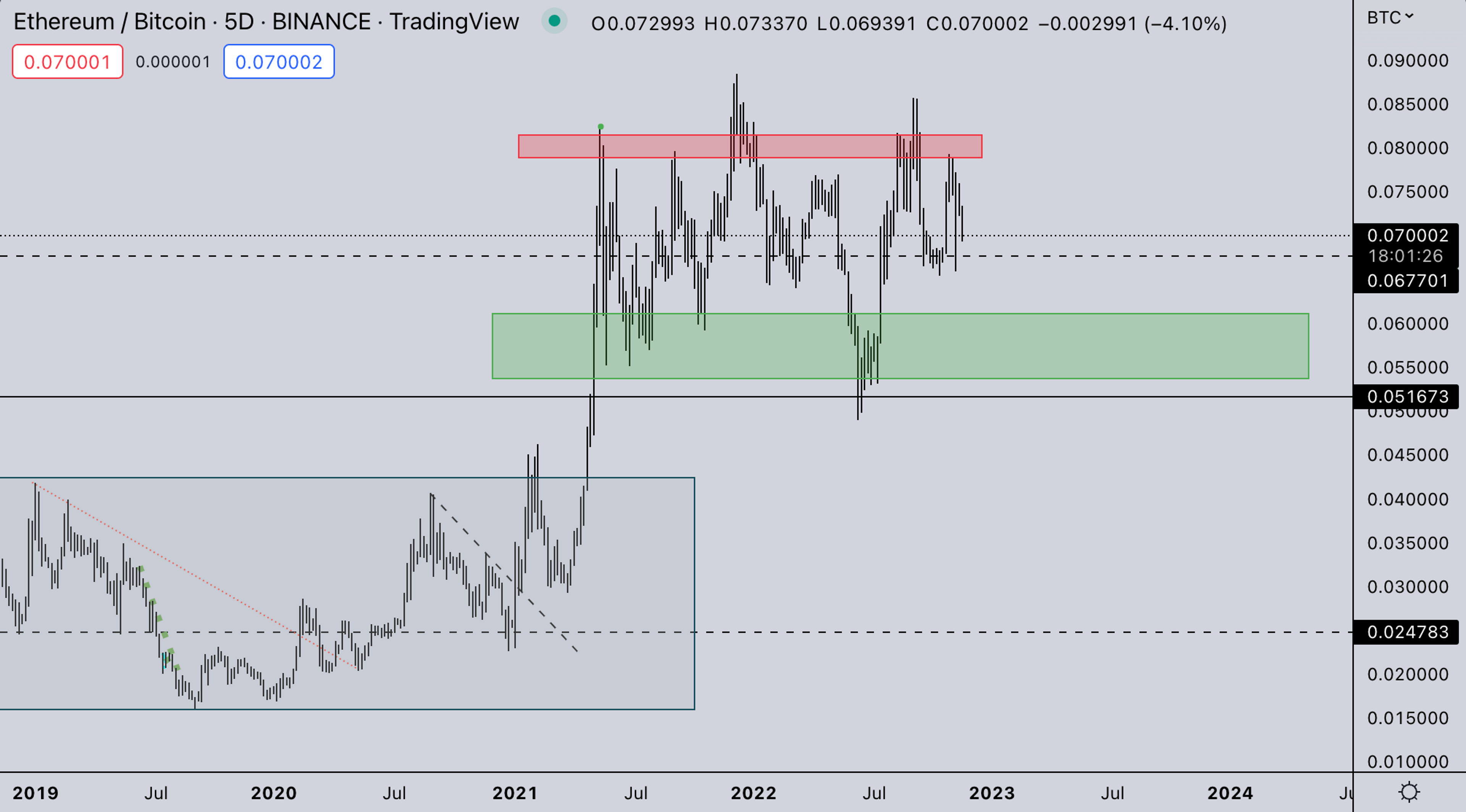 With uncertainty about contagion going around like wildfire, ETH/BTC is also losing ground. Day by day, it’s looking more likely that we’ll see another leg down on BTC with the FTX “hacker” still having a massive stack of ETH that he has been selling over the weekend we’d expect ETH/BTC going for one more leg down into .06-.063 area.