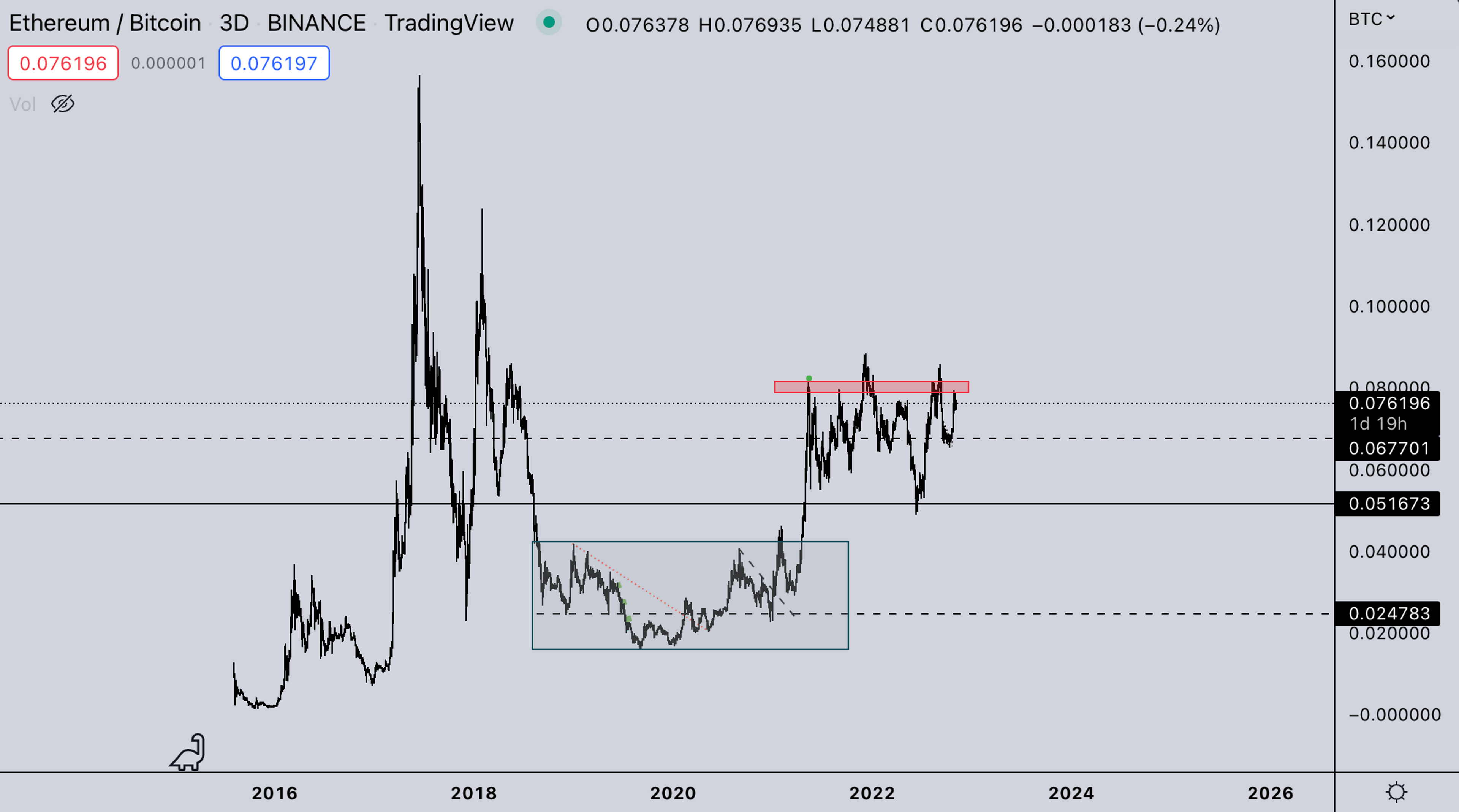 ETH/BTC is back at the highs of the structure we’ve been tracking for the last months. As mentioned multiple times, a breakout from this structure would likely lead to a sustained ETH/BTC rally.