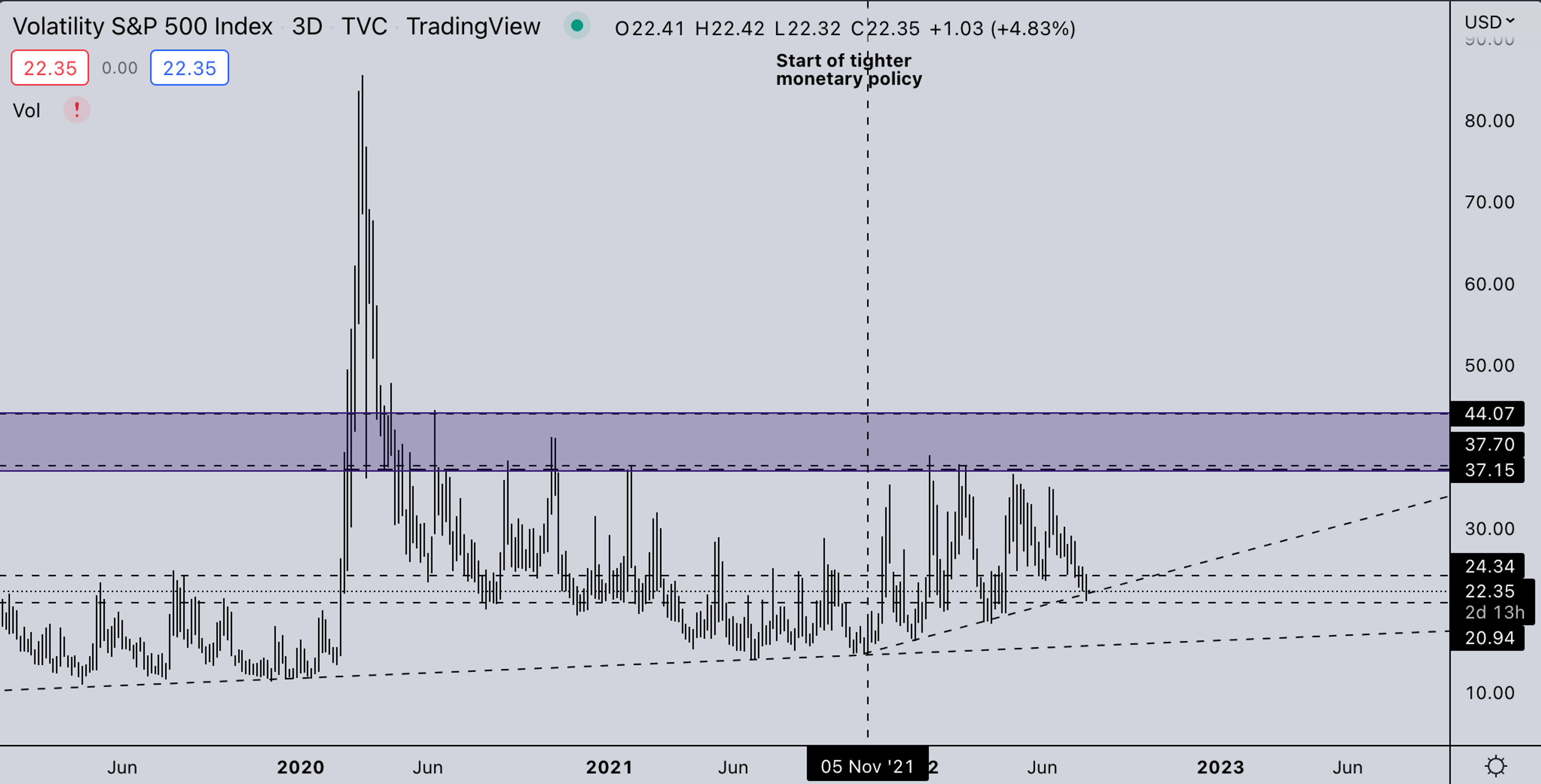 - VIX is hovering around the trend it started 5th of November. With the market already seeing a large relief rally, it’s getting quite a bit more dangerous now as VIX will most likely see some interaction at current levels. This means equities and crypto could range or even drop back a bit. (It doesn’t necessarily have to be bad, just a bit of consolidation).