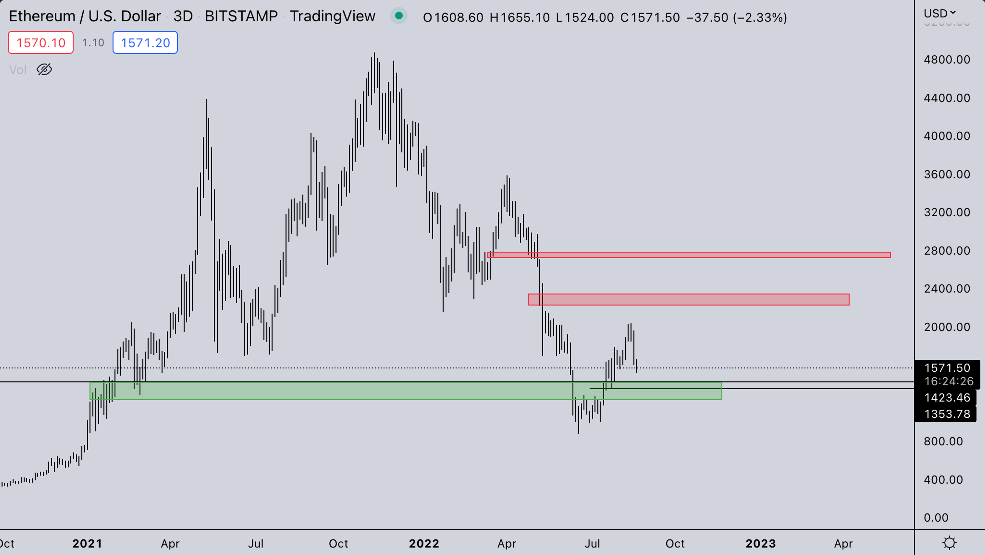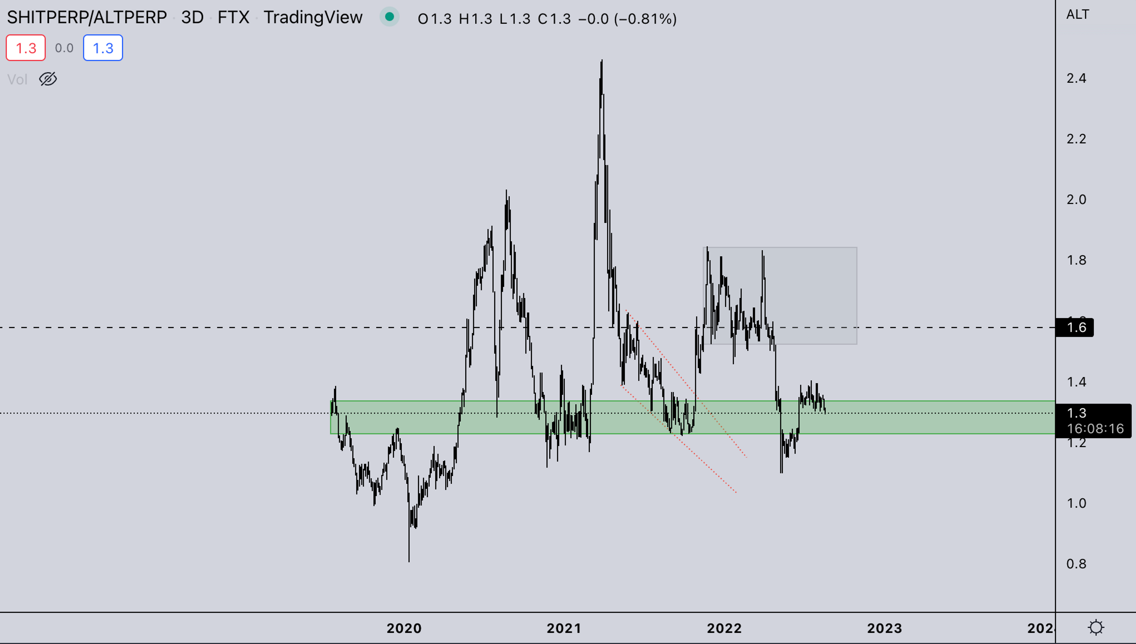 ETH is structurally trading higher than BTC. A possible scenario could be that BTC potentially breaks its current lows while ETH builds a macro higher low. The current weakness is mainly because the reversion trade of the 3AC liquidation is completed; additionally, the window of no FED is ending with FOMC starting again in September.