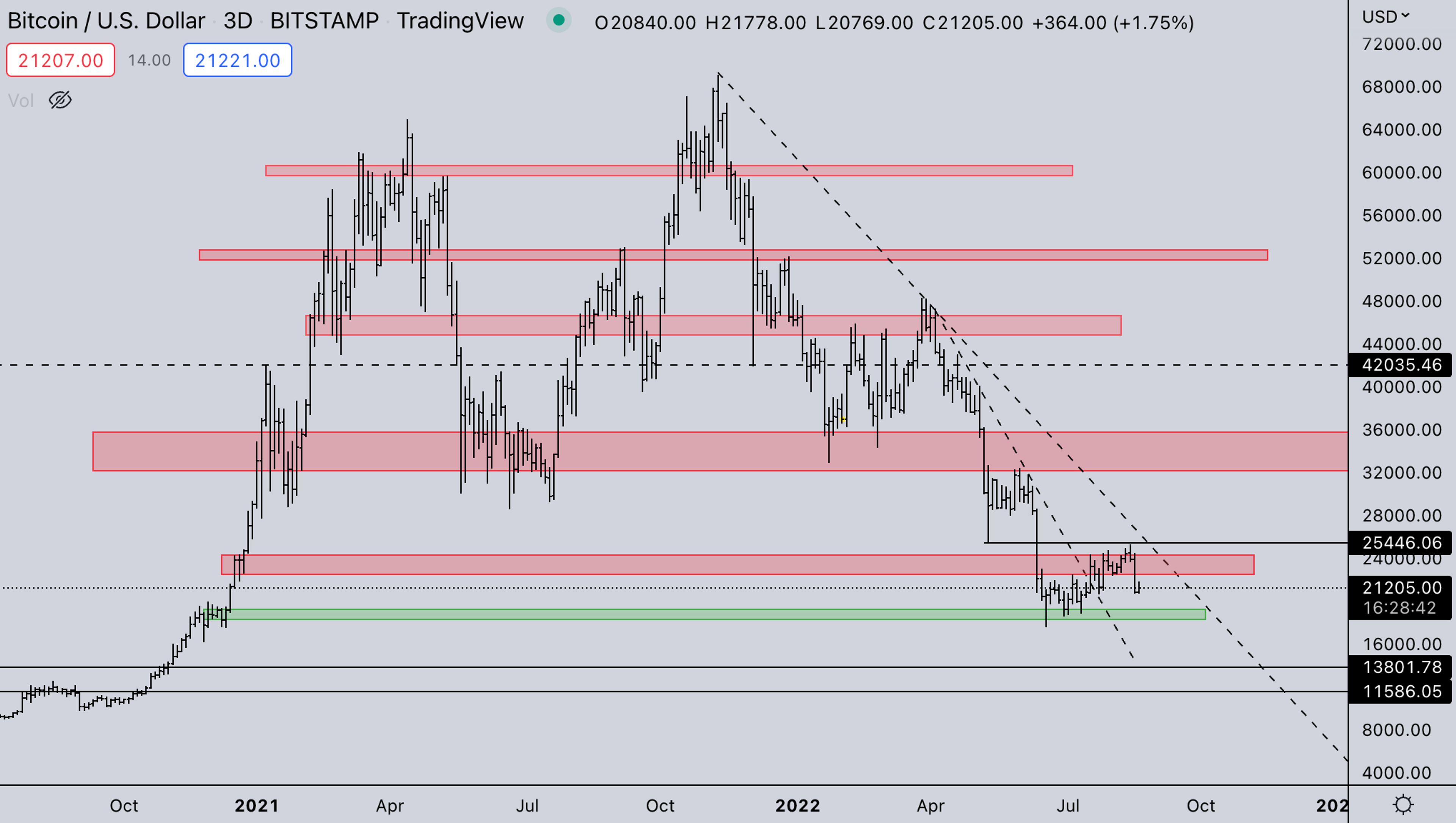 After grinding upwards to 25k, BTC saw a large drop-off. With no recovery over the weekend, the market seems to be risking off for September. With the merge and FOMC coming up, there are lots of unknowns.