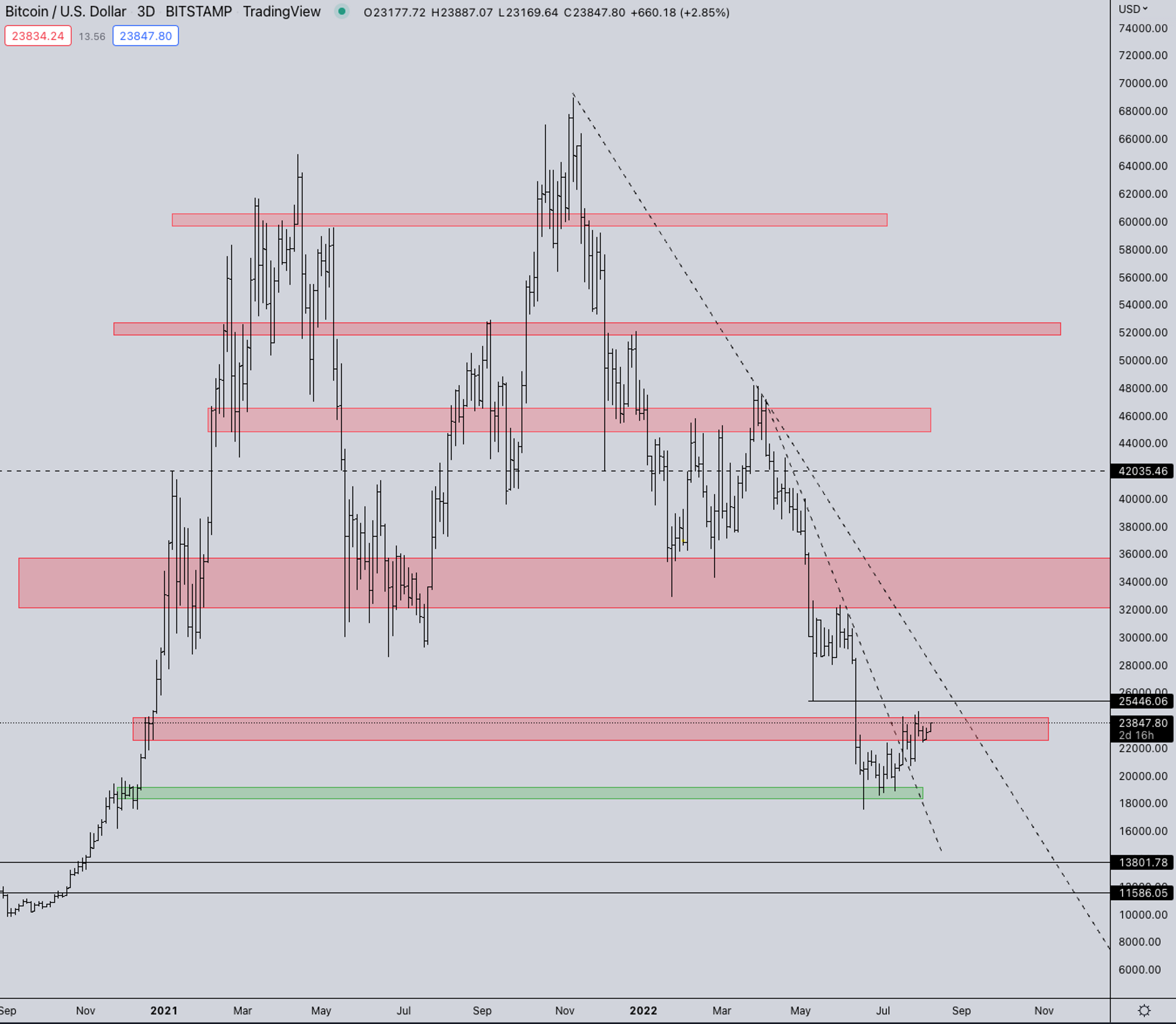 BTC is currently clearing the resistance zone around ±24k. Most likely, it’ll also test the LUNA crash lows around 25k on dollar exchanges and 26.7k on USDT pairings (Because of the USDT: USD depeg).