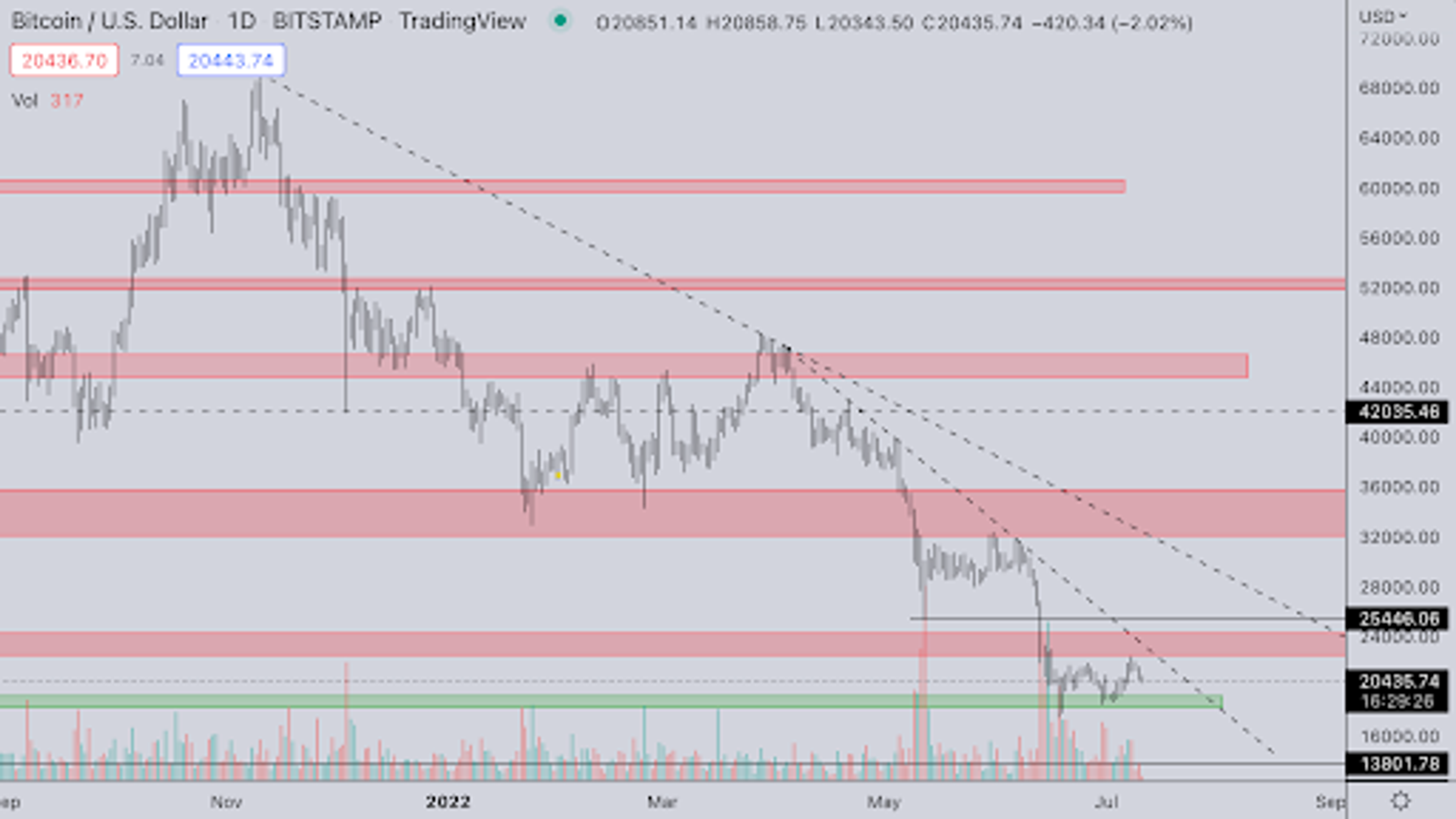 - With ETH trading below its 2017 ATH, a first bullish retest would be the previous ATH. There are some fundamental catalysts looming for ETH (The merge). But just like BTC halving the real supply dynamic of the merge won’t be seen immediately other than a speculative rally for the event. Longer-term, this dynamic will be much more apparent.
