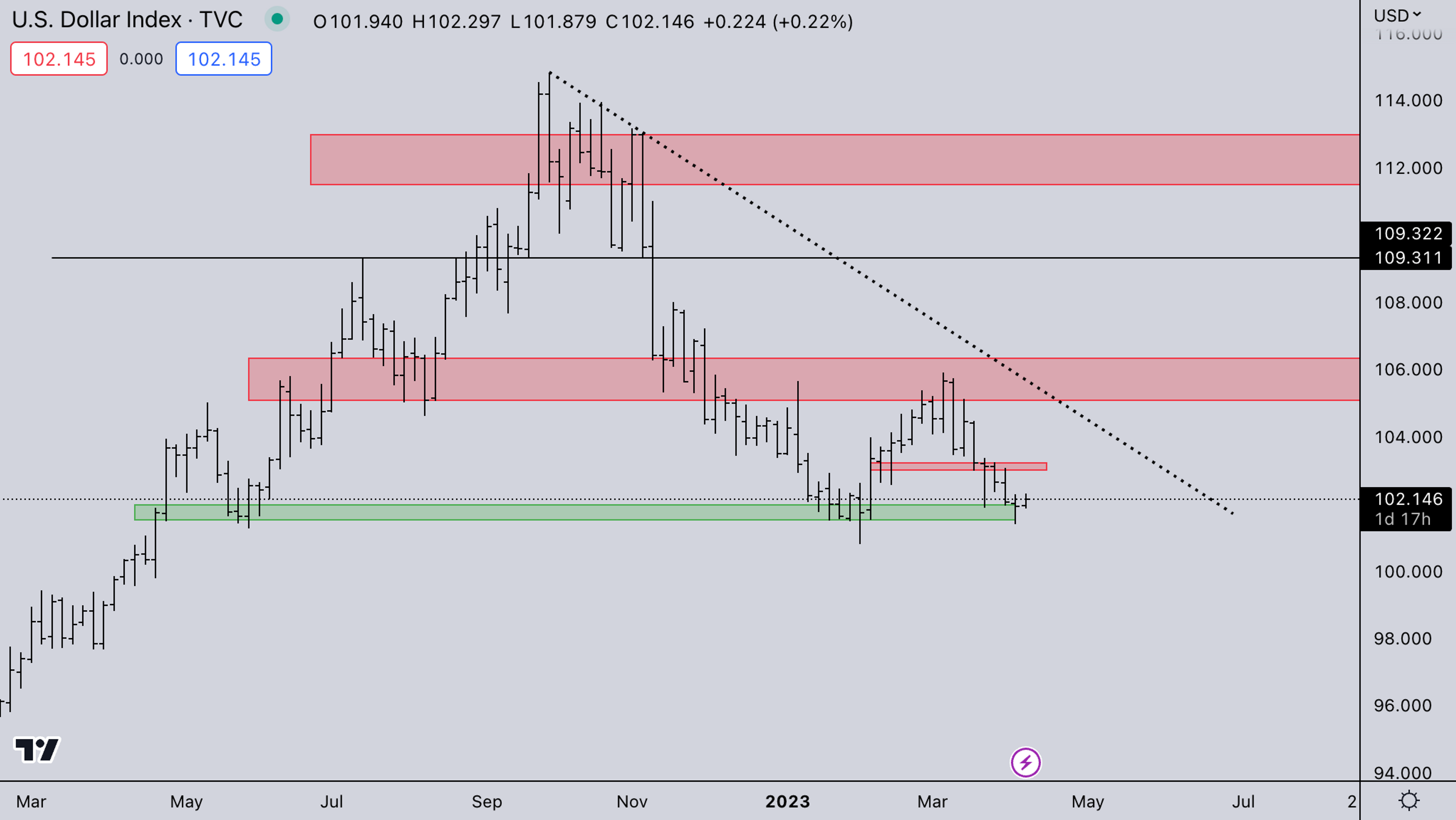 The low U.S. unemployment rate boosts the likelihood of another 25 bps hike, which placed a floor on the DXY level and DXY started moving up from 2-month lows. Further movement will be up to the CPI readings, a break above 106 will likely cause a market sell-off.
