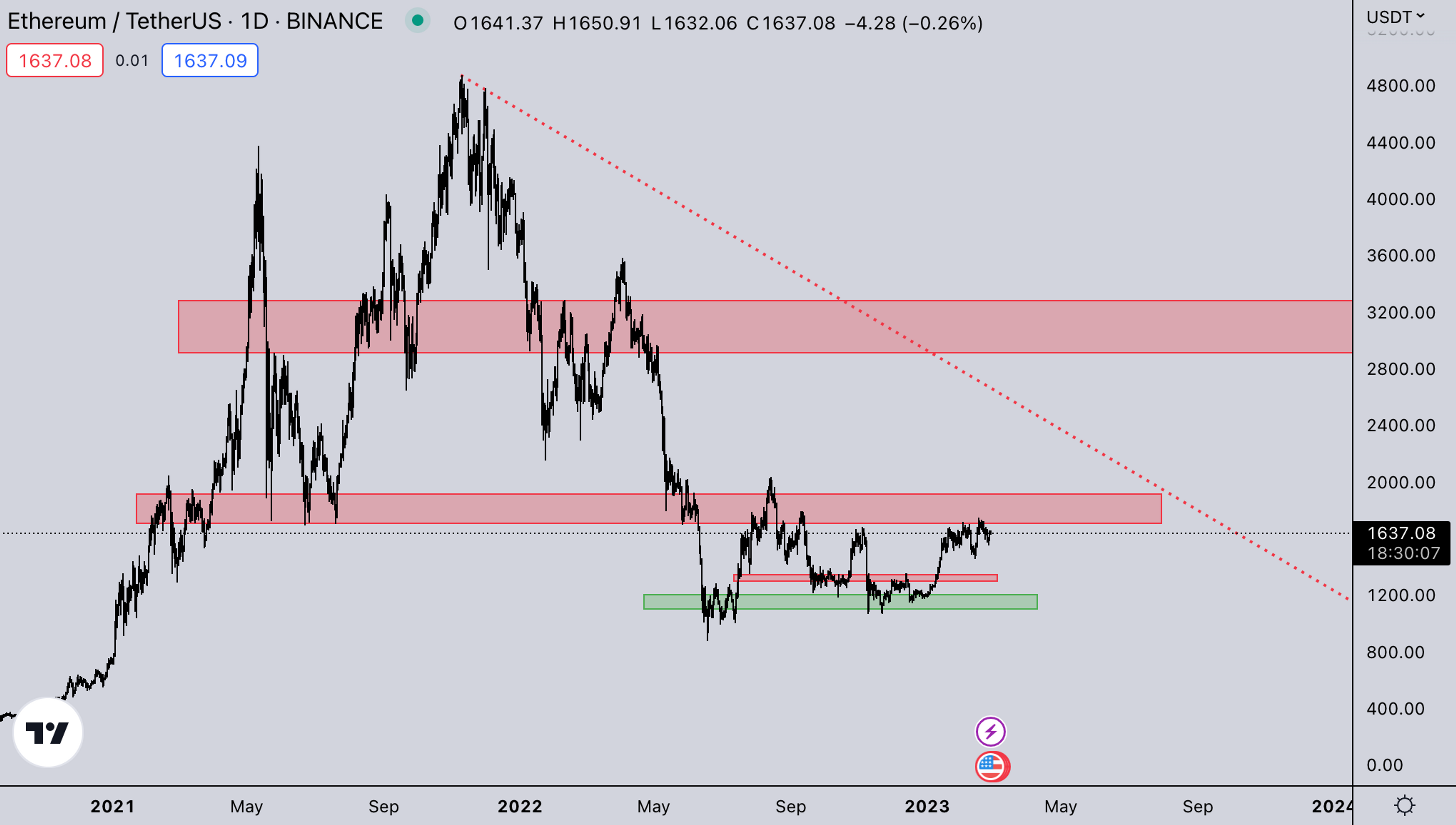 ETH is still grinding at the 2021 lows. With the market seemingly gearing up for a larger move. Shanghai upgrade is approaching rapidly and with this - we see 2 scenario’s going into the event.