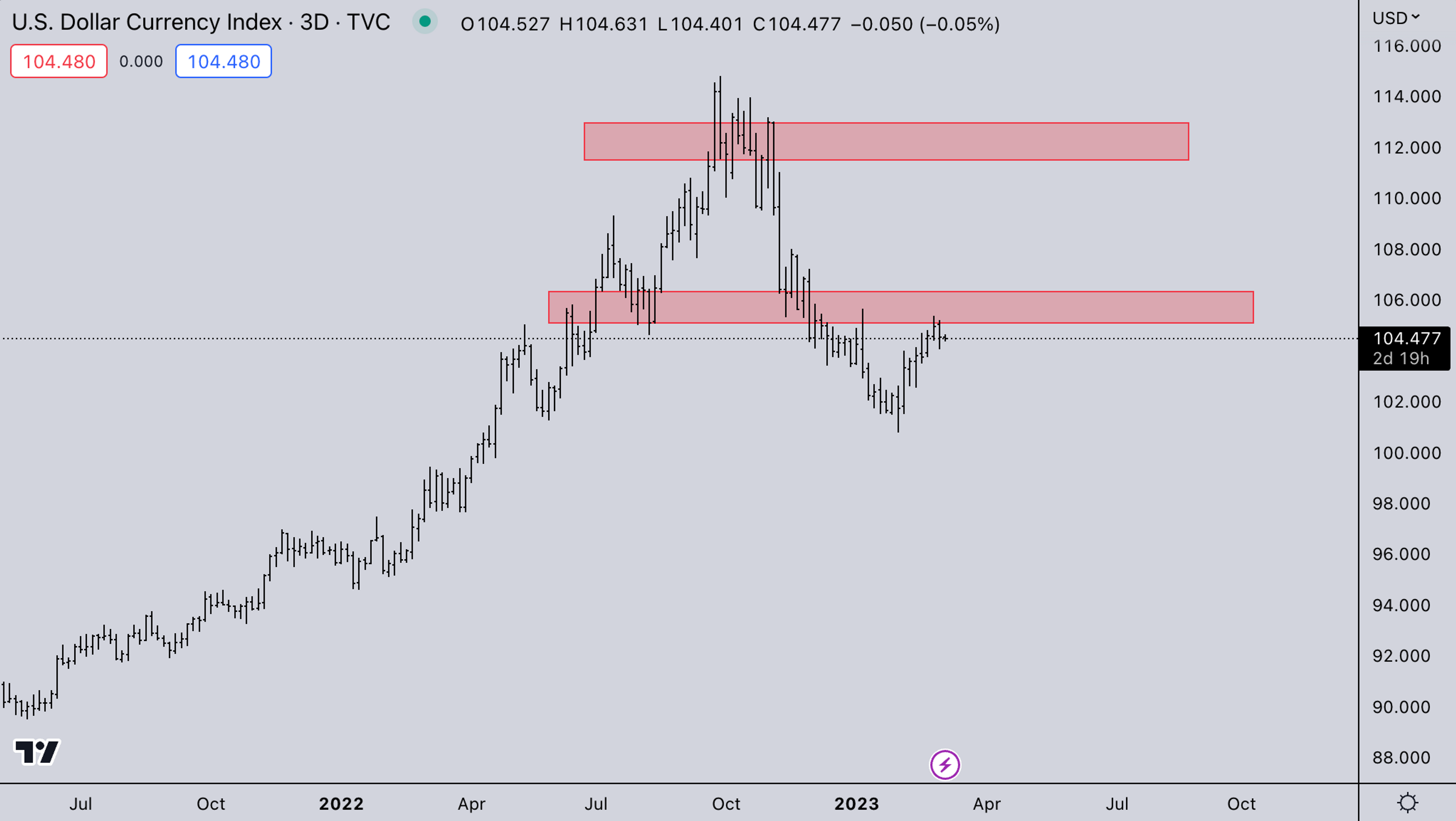 DXY ran into resistance last week at the 105 zone. With a lot of data coming this month, we still expect larger movement in DXY, and also confirm if the hotter-than-expected CPI print was a one-off or if it actually sustains.