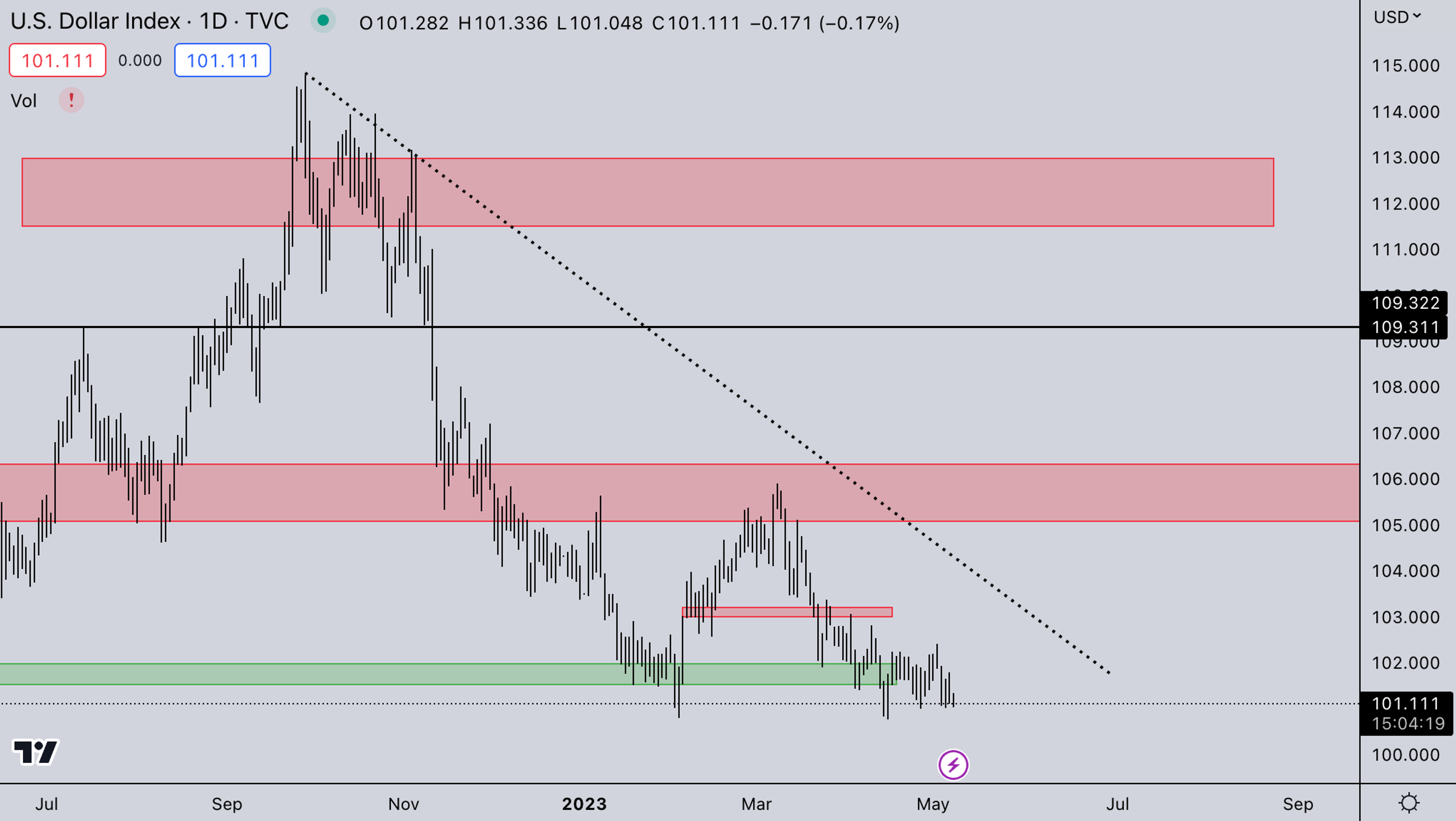 Most major market components are at large inflection points after quite a bit of consolidation. We’re expecting big movements in crypto soon, DXY seems to be confirming this by consolidating on the lows of a major range. If it breaks down, this likely accelerates crypto further up.