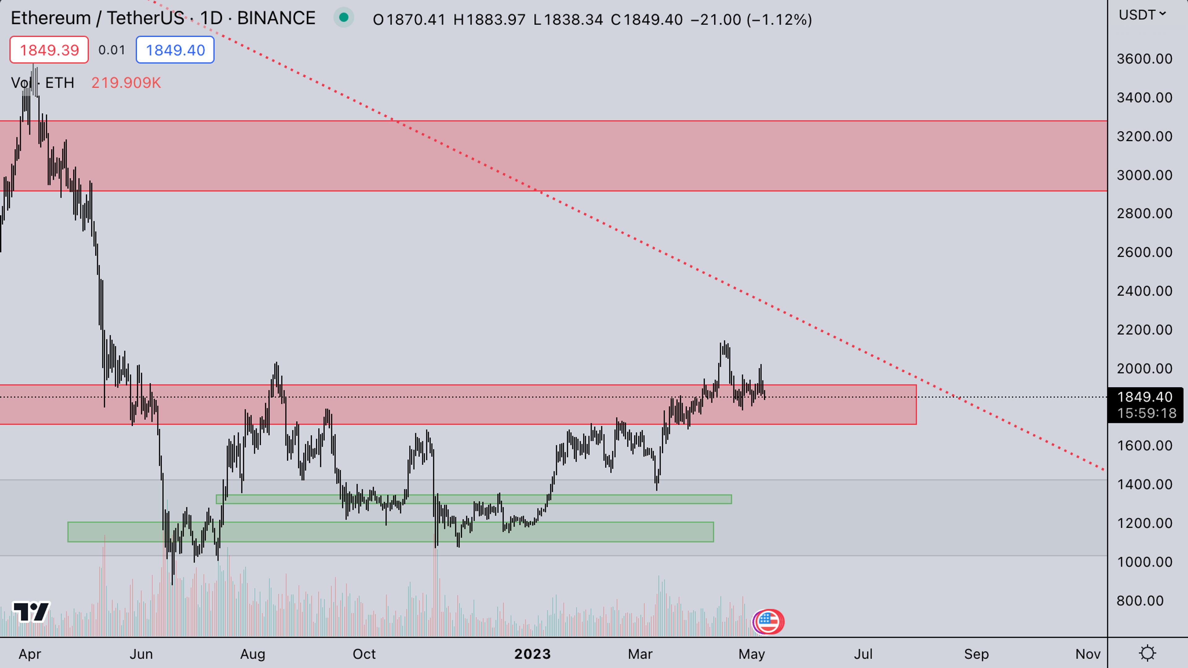 ETH is floating on the 2021 support. We still think it testing the 1600-1700 area would give a stronger case for ETH, flipping the 2021 area back into support. And this would also give NFTs more space, as currently, there’s no follow-through bid in anticipation of a possible correction on BTC / ETH.